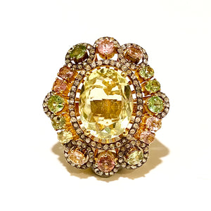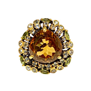 Sterling Silver Gold Plated Citrine, Tourmaline and Diamond Ring