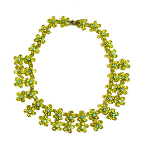 Sterling Silver Multiset Peridot and Blue Topaz Daisy Cluster Necklace
