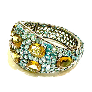 Sterling Silver Blue Topaz and Citrine Multiset Hinged Bangle
