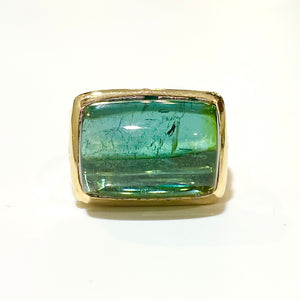 18ct Yellow Gold 18.90ct Green Tourmaline and Diamond Ring