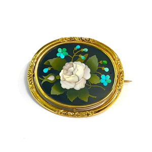Antique Jade, Turquoise, Mother of Pearl and Onyx Pietra Dura Brooch