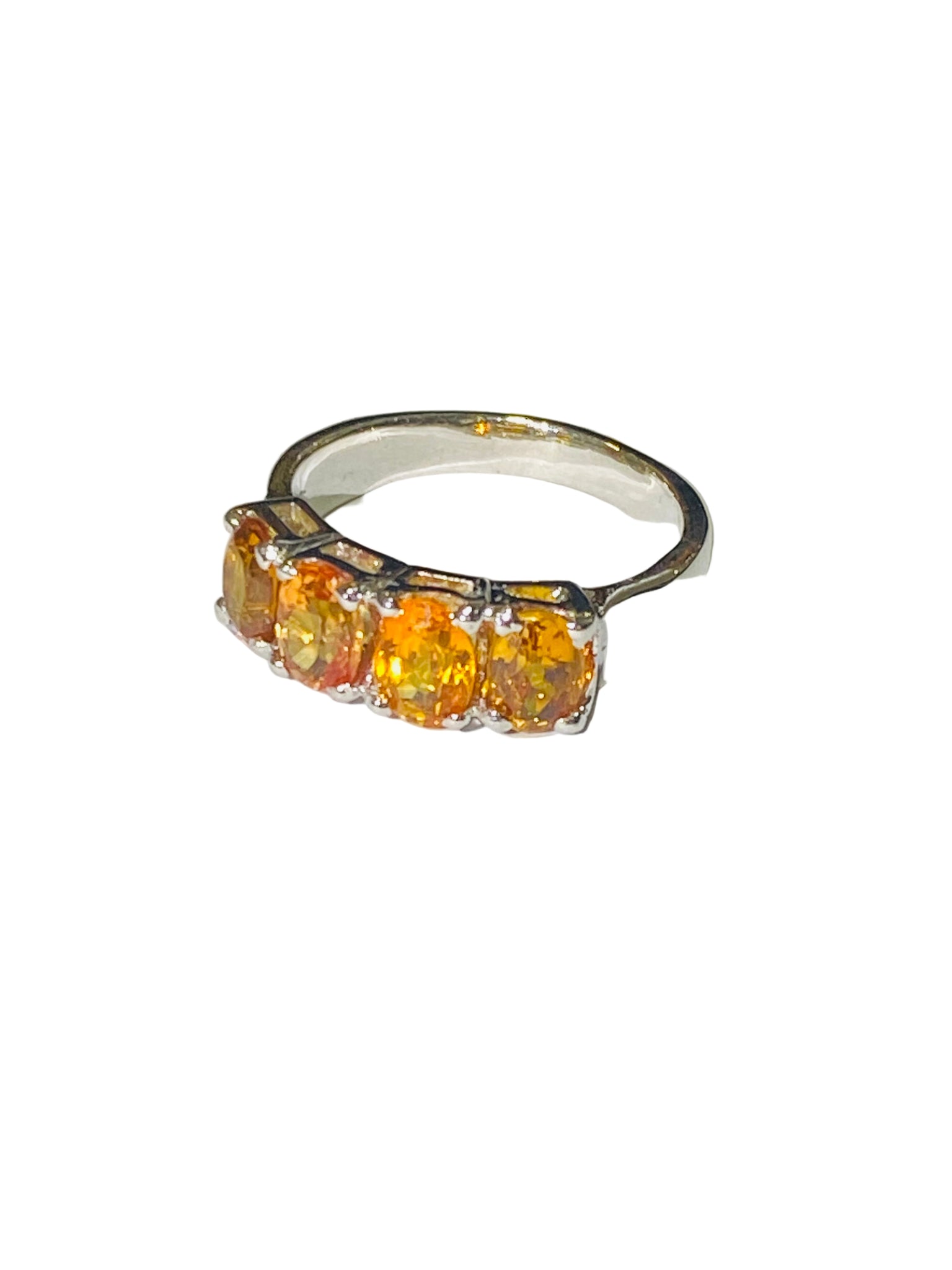 This striking ring features a vibrant natural orange sapphire set in polished sterling silver. The fiery hue of the sapphire is complemented by the sleek silver setting, creating a bold yet elegant design. Perfect for adding a pop of colour to any outfit or as a unique gift for a gemstone lover.