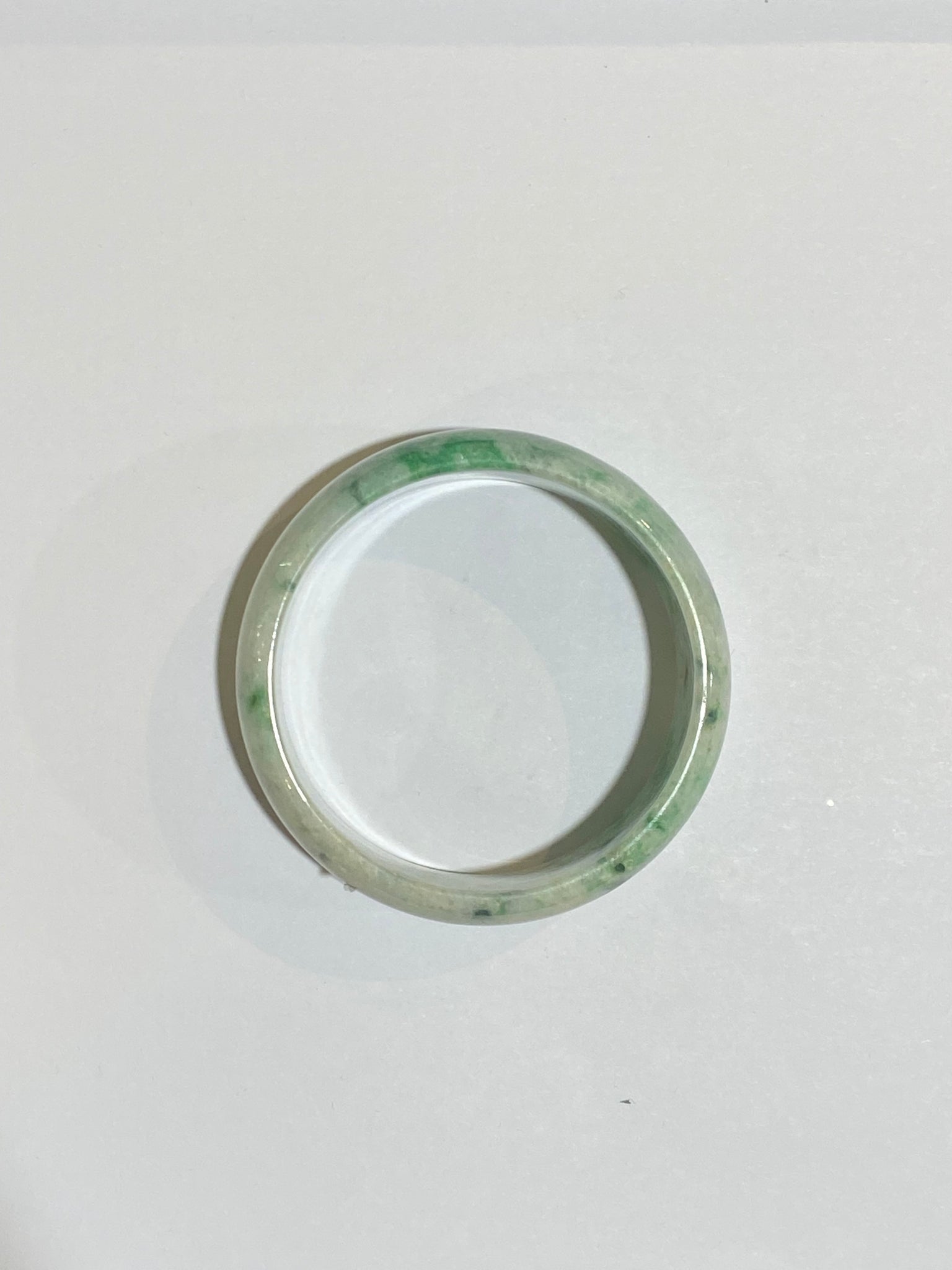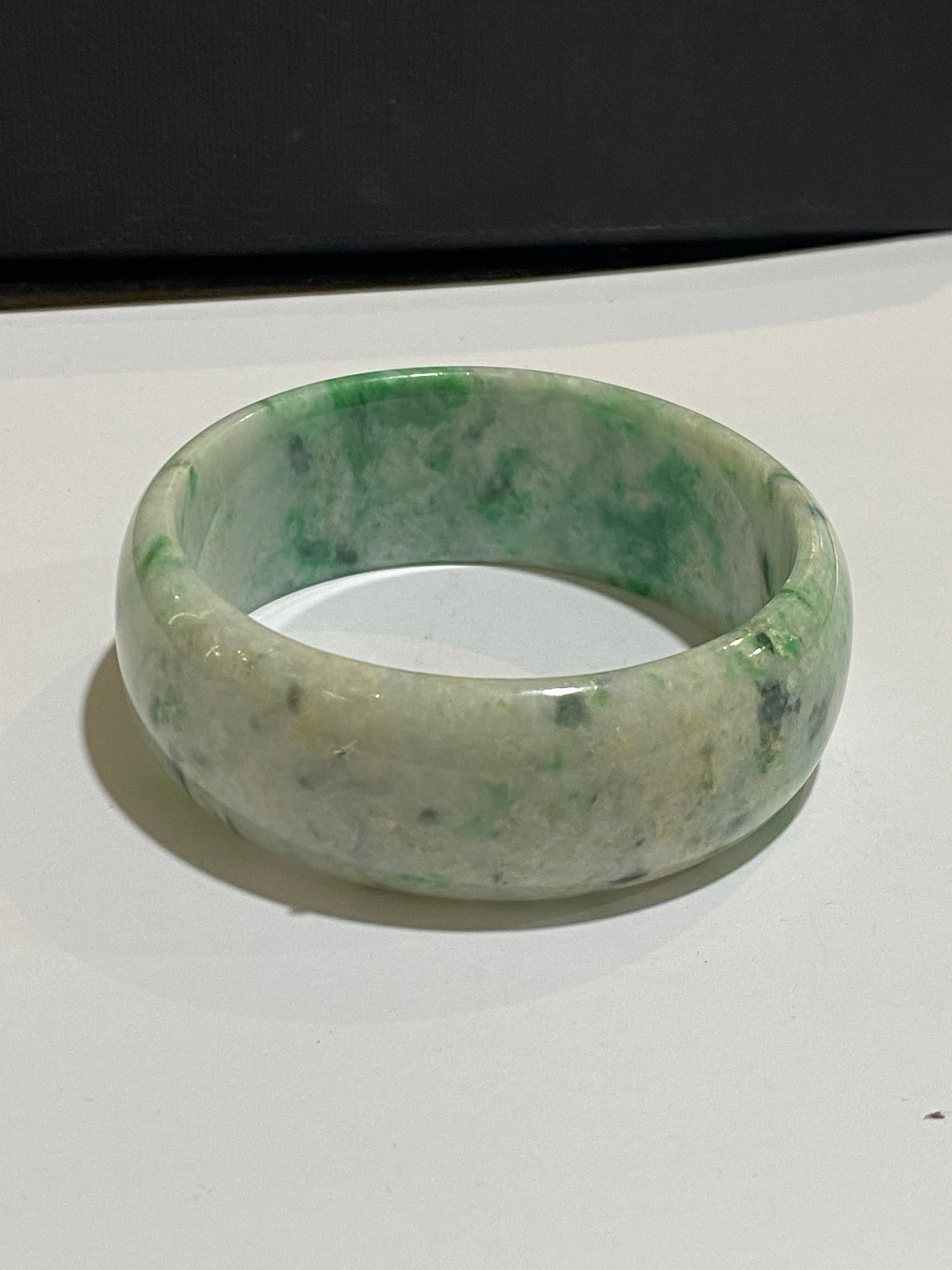 The bangle displays a captivating cloudy imperial green hue—rich and vibrant, yet softened by delicate, mist-like inclusions that create depth and character within the stone. This interplay of vivid green and gentle translucency evokes a serene, ethereal quality, making each glance reveal something new.