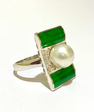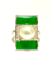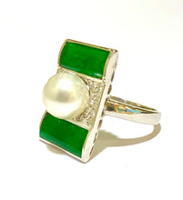 9ct White Gold Diamond Jadiete Pearl Ring is an exquisite jewelry piece featuring a stunning jadeite stone set in a white gold ring, perfect for adding elegance and sophistication to any outfit.