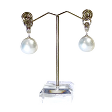 These stunning earrings feature lustrous 14mm white South Sea pearls set in high-quality 9ct white gold, creating a luxurious and classic look that is perfect for both formal occasions and everyday wear. The pearls have a beautiful luster and smooth surface, making them a versatile and elegant addition to any jewelry collection.