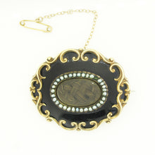 With a silver pin, gold backing, and a safety chain in gold, this mourning locket is not only aesthetically pleasing but also secure and durable. The combination of Whitby Jet and seed pearls adds elegance and sophistication to the design, making it a timeless piece that can be passed down for generations.