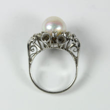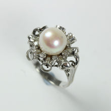Featuring a cultured pearl and a diamond, this ring is a timeless and classic accessory. The pearl is known for its lustrous shine and natural beauty, while the diamonds add sparkle that catch the light. The pearl is encased within a unique setting that adds a one-of-a-kind finish to the design.