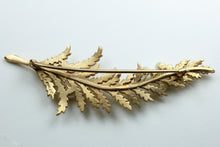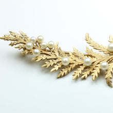 Our Gold and Pearl Fern Leaf Brooch is a beautiful piece that combines elegance and nature-inspired design. Made with 9ct yellow gold, this brooch features a beautifully carved fern leaf, adorned with ten pearls delicately scattered across its surface.