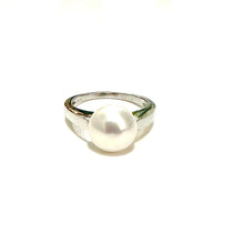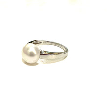 Sterling Silver Modernist Freshwater Pearl Solitaire Ring is a sleek and elegant piece featuring a round white pearl set in high-polished sterling silver.