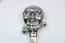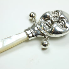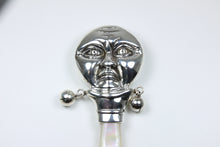 Our Sterling Silver Mother Of Pearl Happy And Sad Face Rattle is a beautiful and delicate toy, perfect for babies and young children. Crafted from sterling silver and adorned with mother of pearl, this rattle is not only a toy but also a stunning keepsake.