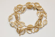 Our Vintage Mother of Pearl Necklace is a gorgeous accessory that exudes timeless elegance. With its creamy light yellow pearl sheen, it adds a touch of glamour to any outfit.