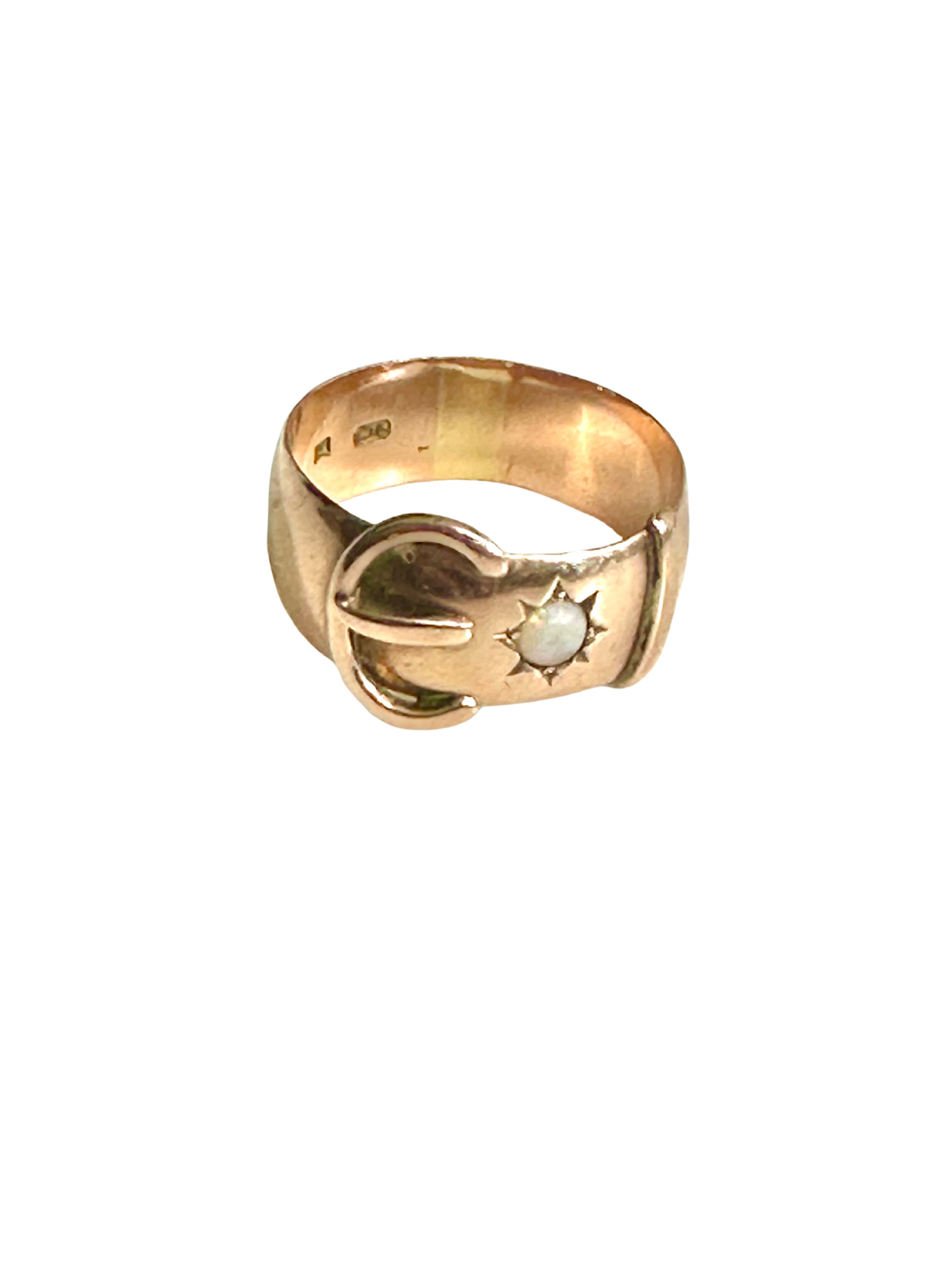 Antique 9ct Rose Gold Buckle Ring with Opal Cabochon