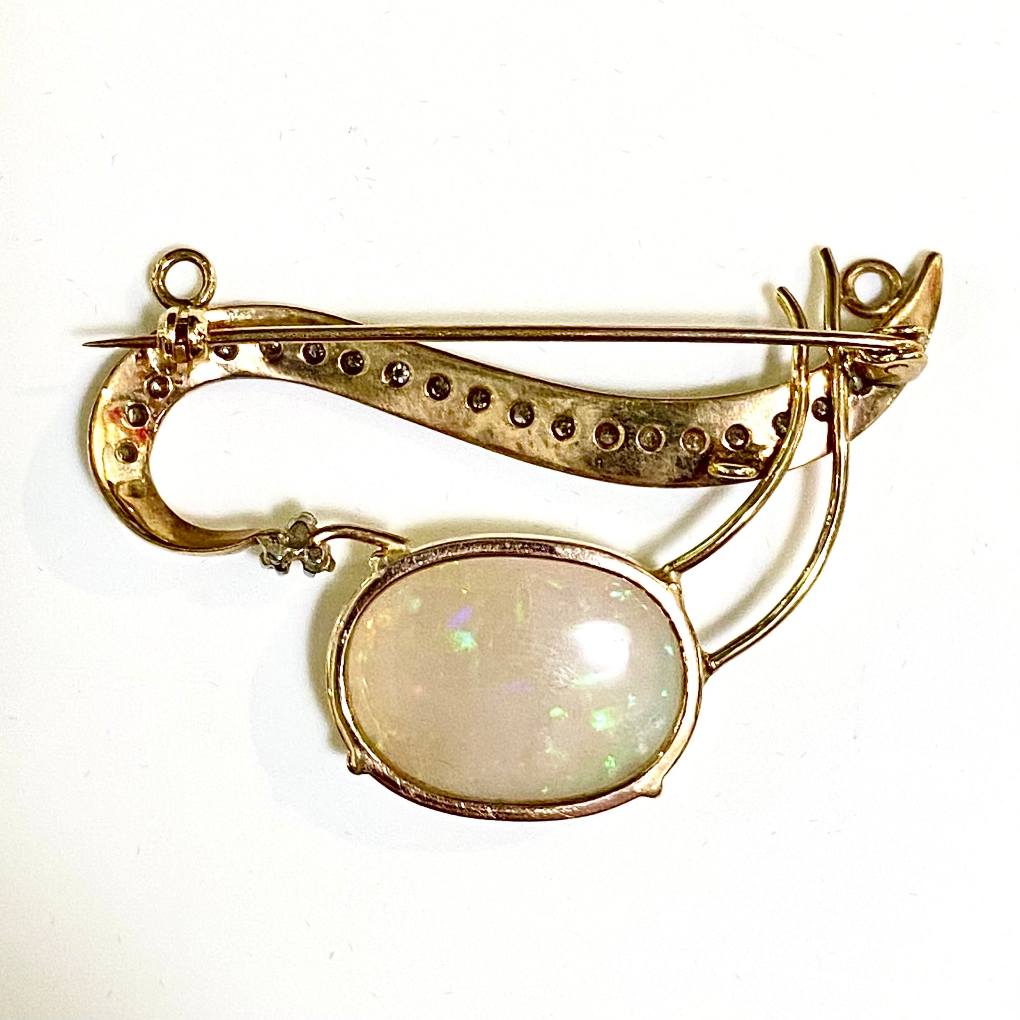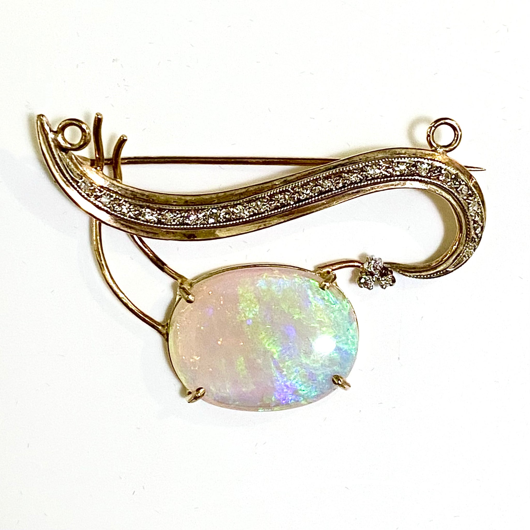 18ct Yellow Gold Solid Opal and Diamond Brooch – Tresors Sydney