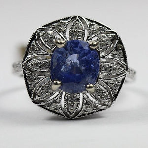 9ct White Gold 3ct Sapphire and Diamond Floral Dress Ring