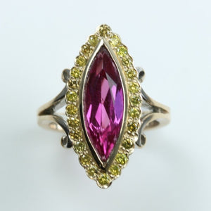 9ct Yellow Gold Synthetic Pink Sapphire and Yellow Diamond Cocktail Ring