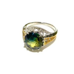 18ct Gold 4ct Round Faceted Parti Coloured Sapphire Ring