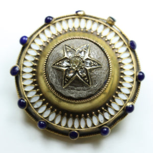 Antique Old Cut Diamond, Sapphire and Enamel Star Mourning Brooch