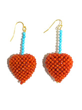 Our Natural Momo Coral and Turquoise Beaded Earrings are stunning earrings crafted with vibrant coral and turquoise beads in a heart-shaped design, perfect for adding a pop of color to any outfit.