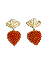 These Natural Momo Coral Beaded Heart Earrings are perfect for individuals who appreciate handcrafted jewelry with a touch of sophistication, ideal for adding a pop of color and style to any ensemble.