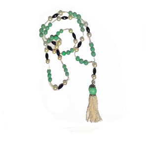 Natural Jadeite, Cultured Pearl and Black Spinel Lariat Necklace