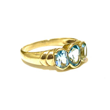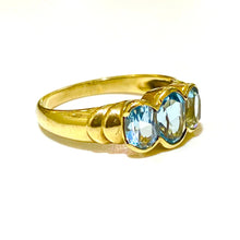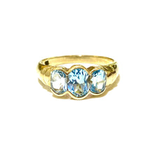 This elegant ring is crafted from high-quality 9ct yellow gold, showcasing a bridge design that adds a modern touch to the classic trilogy setting of the topaz gemstone. The bezel setting enhances the gem's brilliance, making it a standout piece for any occasion.