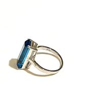 This elegant ring showcases a beautiful London Blue Topaz stone held securely in a claw setting, allowing light to illuminate its dazzling blue hues from all angles. Crafted from 9ct white gold, this ring exudes luxury and sophistication, making it the perfect accessory for any occasion.