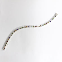 Our Sterling Silver Assorted Semi-Precious Gemstone Bracelet is a stunning piece of jewellery that combines the beauty of sterling silver with a variety of semi-precious gemstones. With gemstones including Amethyst, Citrine, Garnet, Peridot, and Topaz, this bracelet is sure to catch the eye and add a touch of elegance to any outfit.