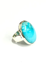This Oval Cabochon Turquoise Ring in size N is ideal for individuals who love unique and handcrafted jewelry pieces, especially those who admire the natural beauty and vibrant colors of turquoise gemstones.