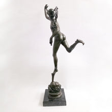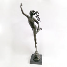 A beautiful Antique, Art Nouveau original, Mercury Bronze Statue mounted on a black marble base.