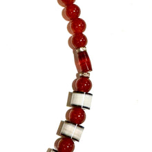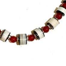 Carnelian and Banded Agate Beaded Necklace is a stunning handcrafted piece that showcases the beauty of carnelian and banded agate gemstones in a unique necklace design.