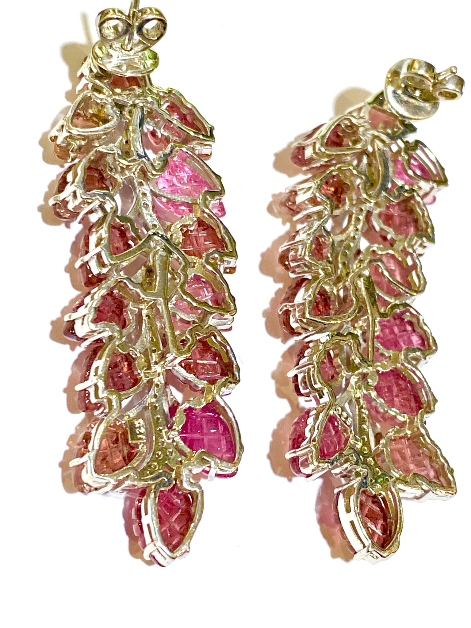 Carved Pink Tourmaline with Diamonds in Sterling Silver Runway Stud Ea – Tresors Sydney