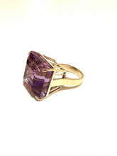 This ring is perfect for those who appreciate bold and luxurious jewelry. It is ideal for individuals who want to make a fashion statement and stand out from the crowd. The combination of the large square cut amethyst stone and the 9ct yellow gold gallery creates a stunning and eye-catching piece that will surely turn heads.